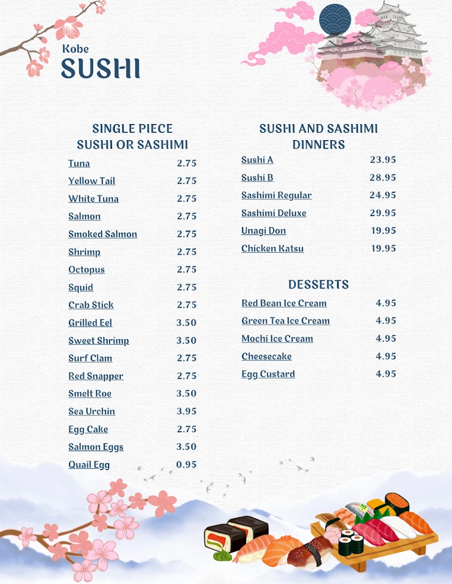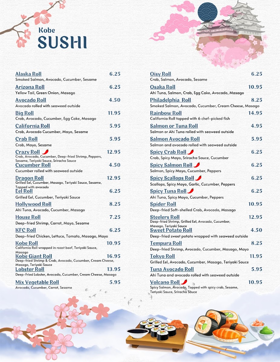 At Kobe Japanese Restaurant & Sushi Bar, you're in for an authentic and mouthwatering experience that showcases the best of Japanese cuisine. Located at 2499 E State St in Hermitage, PA, this charming spot offers a delightful variety of sushi, sashimi, and other traditional dishes, all prepared with the freshest ingredients. Whether you're a sushi enthusiast or craving a hearty bowl of ramen, you'll find something to satisfy your tastes. The menu is thoughtfully designed to cater to all preferences, from classic rolls to innovative creations. Kobe’s warm atmosphere and attentive service make it a perfect destination for enjoying delicious meals with friends and family.